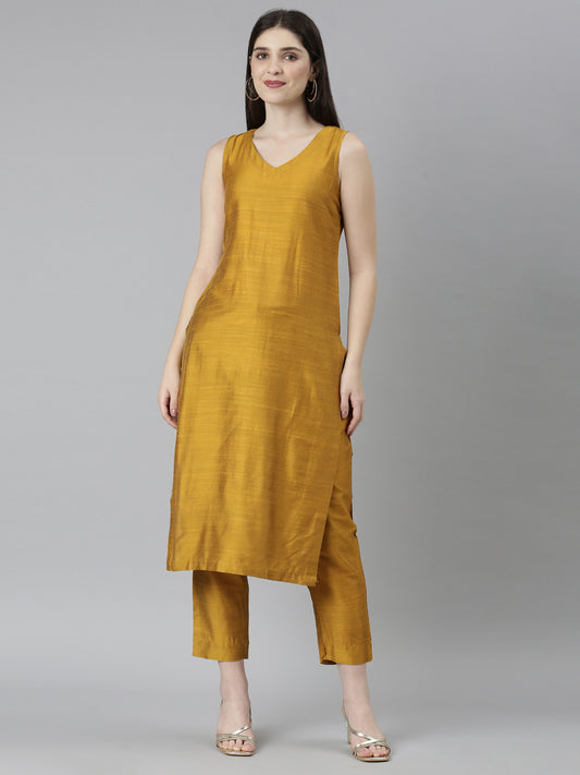 EDIRA Women Mustard Rayon Silk Textured Co-Ord set