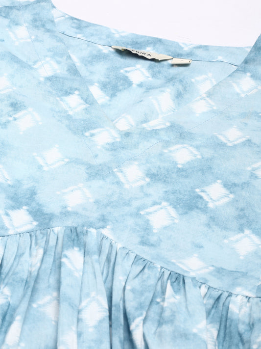 Powder Blue printed Flared Kurta Pant Set with Dupatta