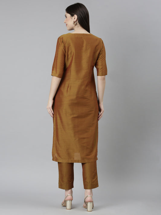 EDIRA Women Rayon Silk Kurta and Pant Set - Oscar Gold