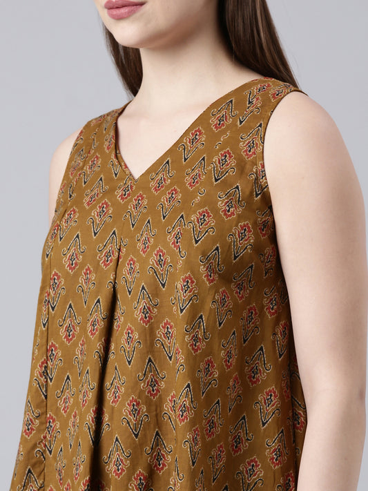 Mustard color Printed Cotton Flared Kurta & Pant Set