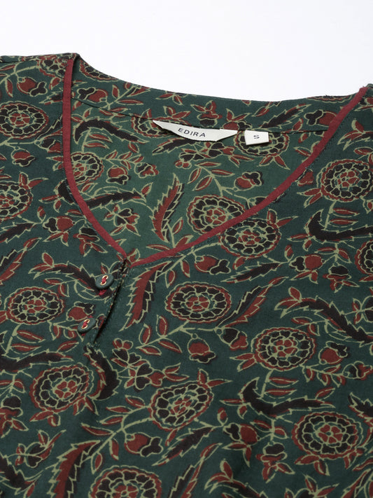 EDIRA Women Green Printed Kurta and Pant Set
