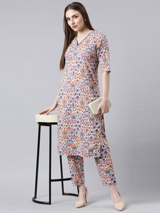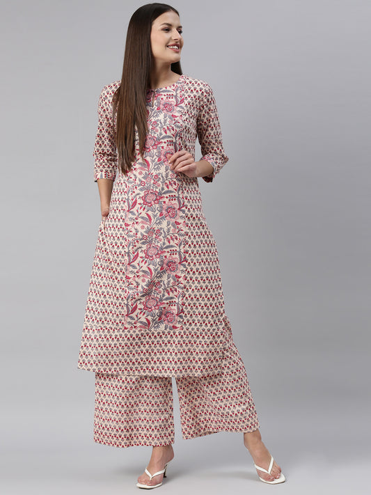 Oatmeal Cotton Printed Kurta set