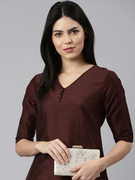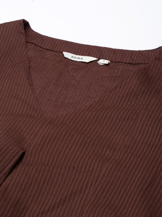 Textured Cotton Flared Kurta Pant Set - Coffee Bean