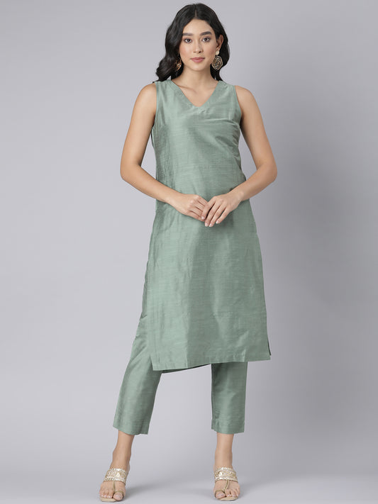 EDIRA Green glimmer Rayon Silk Textured Co-Ord set
