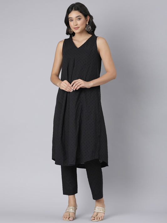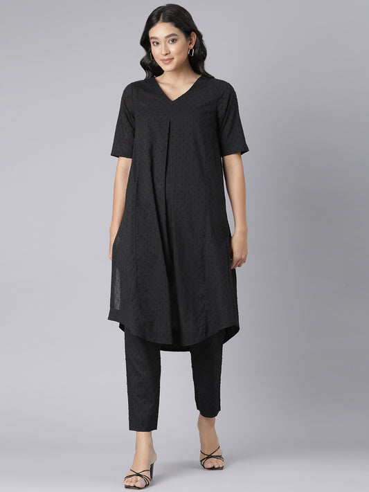 EDIRA Charcoal Black Silk Textured Co-Ord set