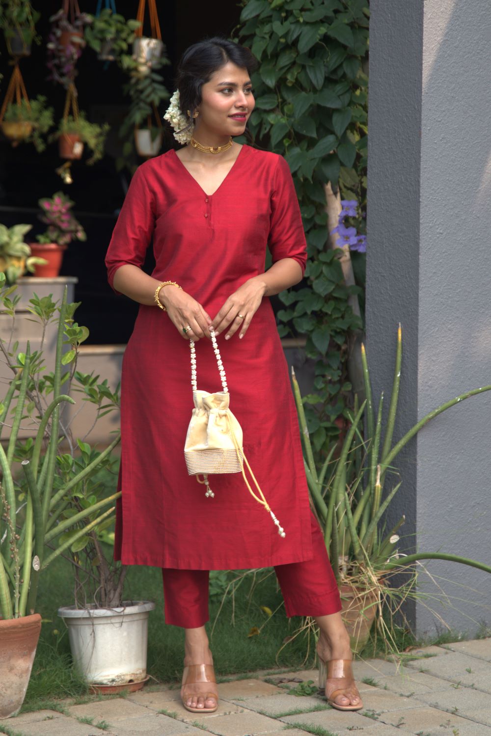 Beautiful Red Silk Kurta set is perfect Co-ords set this Festive season.